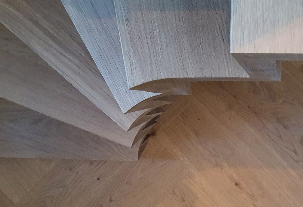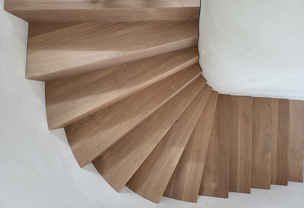 Iedere treden exact aan het stucwerk aangepast van de ronde muren